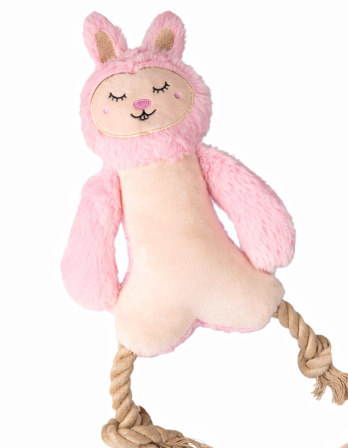 O brinquedo combina pelúcia macia com cordas resistentes, ideais para mordidas e brincadeiras de puxar. Essa combinação ajuda a estimular a atividade física e mental do pet, além de contribuir para reduzir o tédio no dia a dia.