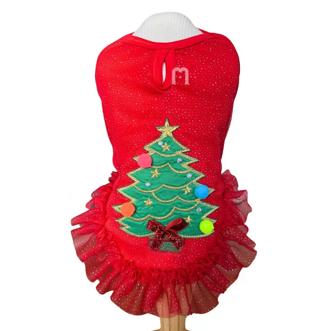 Deixe sua pet ainda mais linda e no clima natalino com a Regata Árvore de Natal Malloo.